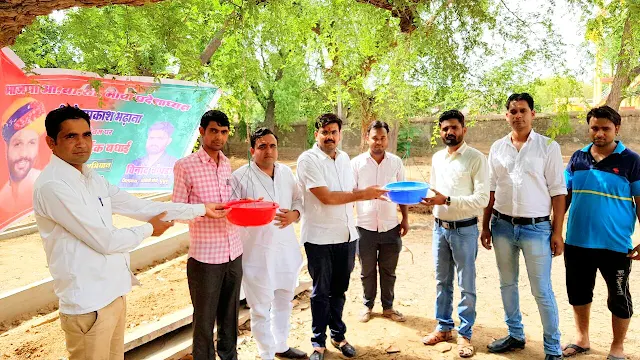 नवलगढ़ -एडवोकेट ओमप्रकाश जी भड़ाना प्रदेश अध्यक्ष भाजपा ओ.बी.सी.मोर्चा (राज०) का जन्म दिवस विनोद जी चोपडा़ जिला अध्यक्ष भाजपा ओ.बी.सी.मोर्चा,झुन्झुनू के नेतृत्व में पक्षियो के लिए परिंडे लगाकर और सफाई करके मनाया गया।इसके साथ ही राजकीय अस्पताल में प्रभारी डॉ.निशी अग्रवाल के साथ मिलकर रोगियो को फल भी वितरित किये गये।इस सुअवसर पर योगेन्द्र मिश्रा मन की बात के जिला प्रभारी,प्रकाश चन्द सैनी जिला महामंत्री ओ.बी.सी.मोर्चा,विनित घोडेला जिला मंत्री ओ.बी.सी.मोर्चा,अरविन्द शर्मा आई.टी.सेल,ओम प्रकाश सैनी,रुपेश घोडेला,रवि घोडेला,कजोड़मल घोडेला,लखन बेडवाल,राकेश सैनी,विष्णु सैनी आदि गणमान्य लोग मौजूद थे।