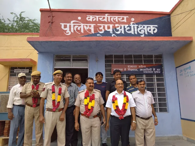 खेतड़ी -अपराधिक घटनाओं के रोकथाम में जिले में प्रथम स्थान प्राप्त् करने वाली खेतड़ी पुलिस टीम का बुधवार को व्यापार मंडल अध्यक्ष नवलकिशोर पारीक, उपाध्यक्ष सुधीर कुमार गुप्त, महामंत्री अमरचंद शर्मा, भरत अग्रवाल, हंसराज वर्मा, पवन गुप्ता ने माला पहनाकर सम्मान किया। खेतड़ी पुलिस ने मंगलवार को शिमला में हुई बैंक लूट का 40 मीनट में ही खुल्लासा कर तीन आरोपियों को गिरफ्तार किया था। पुलिस टीम ने अपनी जान की परवाह किए बगैर दोनों तरफ से हुई फायरिंग के बाद भी तीनों बदमाशों को पकड़ने में कामयाब रही। पुलिस टीम ने आरोपियों के कब्जे से तीन रिवाल्वर, एक चाकू, तीन जिंदा कारतुश व बैंक से लूटी गई तीन लाख दस हजार रूपए की राशी बरामद की थी। बैंक लूट की वारदत को नाकाम करने में सबसे ज्यादा वीरता का परिचय चौकी प्रभारी भीम सिंह व चालक पूथ्वी मीणा ने दिया था। चौकी प्रभारी भीमसिंह ने बताया कि जब उनको सूचना मिली तो वे अपने स्टाफ के साथ चौकी में जरूरी कार्य कर रहे थे कि इसी दौरान उन्हे शिमला में बैँक लूट होने की सूचना मिली तो वे अपने जाब्ते के साथ घटनास्थल पर जाने की बजाय आगे से किशनपुरा-दनचौली के रासते मं जीप को लगाकर नाकाबंदी कर दी। इसी दौरान बिना नंबर की सफेद अपाचे बाइक पर तीन युवक आए तथा नाकाबंदी को देखकर फायरिंग शुरू कर दी, चौकी प्रभारी भीमसिंह व चालक पृथ्वी मीणा ने अपनी आत्मरक्षा करते हूए जवाबी फायरिंग की तो उनकी बाइक का संतुलन बिगड़ गया ओर वे गिर गए। गिरने के बाद भी एक युवक फायरिंग करता रहा तथा दो जनों ने भागने का प्रयास किया तो पुलिस टीम ने उनको दबोच लिया। व्यापार मंडल की टीम ने डीएसपी विरेंद्र मीणा, थानाधिकारी हरदयालसिंह, चौकी प्रभारी भीमसिंह, सिपाही पृथ्वी सिंह मीणा का माला पहनाकर व मिठाई खिलाकर सम्मान किया।