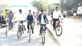 चूरु जितेश सोनी ।महीने की पहली तारीख को नव वर्ष के अवसर पर चूरू साइकिल क्लब द्वारा नो व्हीकल डे मनाया गया। कार्यक्रम के संयोजक डॉ जे बी खान ने बताया कि इसका आयोजन पूरे जिले भर में किया गया। इस अवसर पर जिला कलेक्टर संदेश नायक, जिला पुलिस अधीक्षक तेजेस्वनि गौतम, डॉ प्रशांत शर्मा, सांवर गुर्जर, रविन्द्र बुडानिया, डॉ बी एल मेहरा, सोमेश शर्मा, सहित अधिकतर अधिकारी, कर्मचारी बिना वाहन या साइकिल से अपने कार्य स्थल पर पहुंचे। जिला कलेक्टर का सभी कर्मचारियों ने गुलाब का पुष्प भेंट कर स्वागत किया गया। डॉ खान ने ये भी बताया कि चूरू साइकिल क्लब के सदस्यों द्वारा साइकिल से चूरू शहर का भ्रमण कर आमजन को पर्यावरण के प्रति सजग रहते हुए नो व्हीकल डे अपनाने के लिए प्रेरित किया। इस अवसर पर सदाम हुसैन, वसीम खान, विक्रम बैदा, पवन कस्वां, राकेश गोदारा, नसीम खान सहित क्लब के सभी सदस्य शामिल रहे।